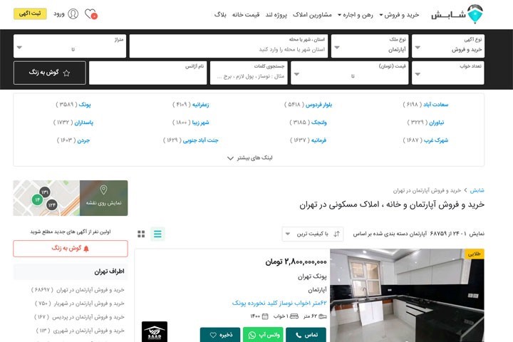 اما سوال اصلی این است که: برای تصمیم به این بزرگی و بسیار حساس و مهم به چه وب سایت هایی می توان اعتماد کرد؟ و از چه پلتفرم هایی می توان استفاده کرد؟ خرید ملک به هر نوعی از مهم ترین تصمیمات هر فردی در طول زندگی است که باید با هوشیاری کامل انجام گیرد. اگر در مرورگر خود عباراتی مانند: خرید خانه، اجاره آپارتمان در تهران و … را جستجو کنید با وب سایتهای بسیاری برخورد می کنید که یکی از این وب سایت ها، وب سایت شابش است.وب سایت شابش، یک وب سایت و اپلیکیشن تخصصی درج آگهی املاک در ایران است که کاربران به راحتی می توانند انواع ملک برای خرید و یا رهن و اجاره را در آن جستجو کنند.