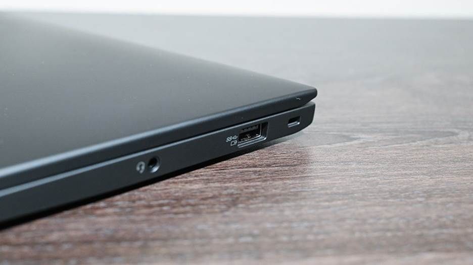 لپ تاپ ThinkPad X1 Carbon ترکیبی از پورتهای مدرن و قدیمی را بههمراه دارد و مشکل خاصی در این زمینه نخواهید داشت. هنوز هم خاطرات اسلات کارت حافظه روی لپ تاپهای سری تینک پد را بیاد میآوریم. با توجه به اینکه این لپ تاپ مجموعه گستردهای از پورتها را برای شما تدارک دیده است، چندان نمیتوانیم به نبود اسلات کارت حافظه ایراد بگیریم. در سمت راست یک پورت USB 3.2، یک جک هدفون و یک شیار قفل وجود دارد که ماهیت طراحی این لپ تاپ را تشکیل میدهد.